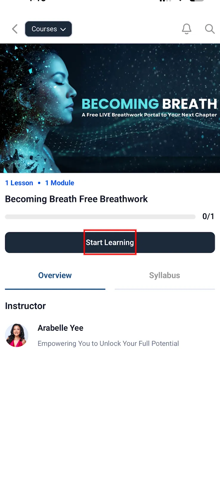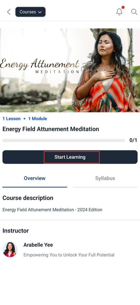 Program တွေကို access လုပ်မယ်ဆိုရင် Course ထဲ ရောက်တာနဲ့ ကိုယ် enroll လုပ်ထားတဲ့ program တွေကို တွေ့ရမှာဖြစ်ပြီး လေ့လာချင်တဲ့ program ကို ရွေးပြီး Start Learning ကို နှိပ်ပြီး access လုပ်နိုင်ပါပြီ။