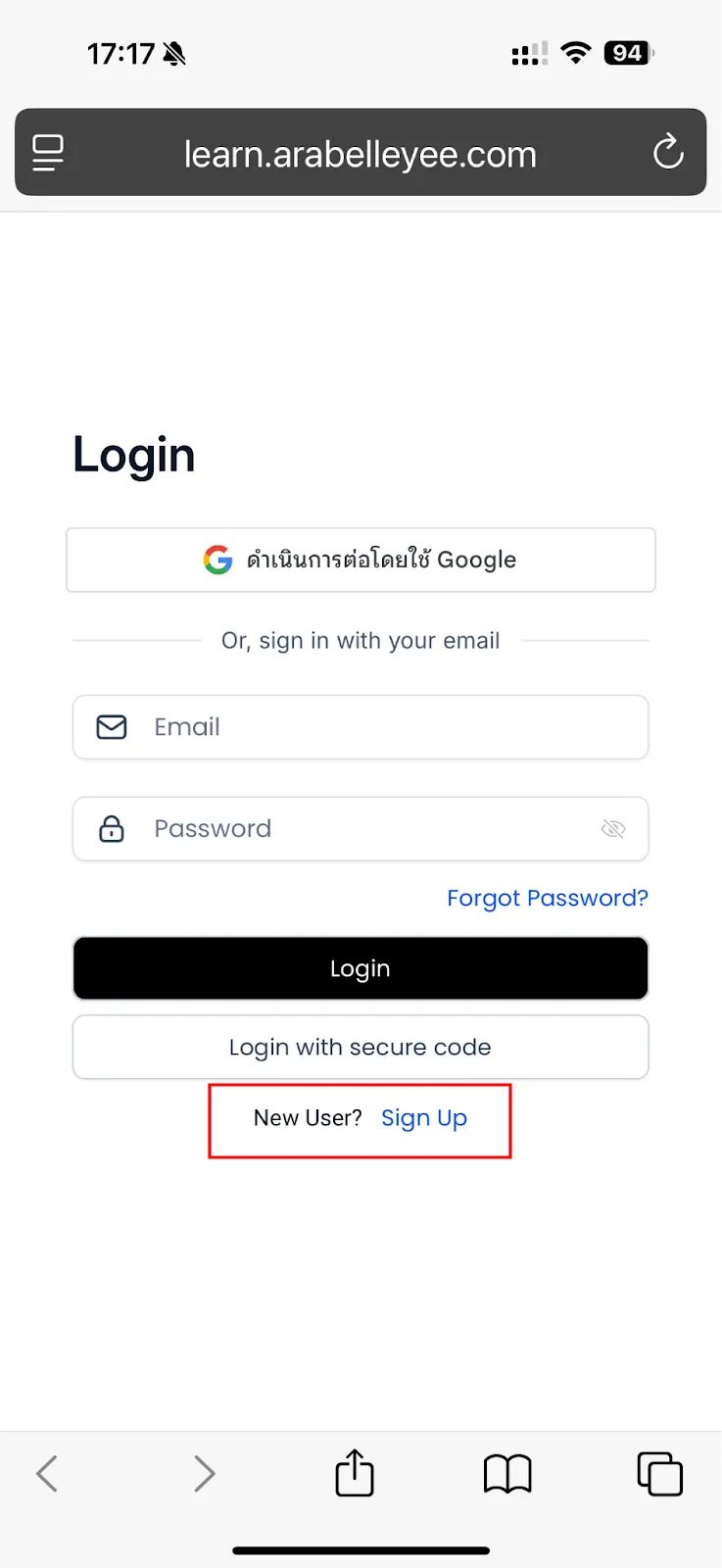 Account setup လုပ်ဖို့ learn.arabelleyee.com ကို သွားပါ။